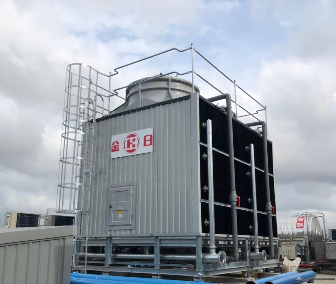 - As aletas são escalonadas, e a água de resfriamento é resfriada primeiro pelas aletas e depois pelas serpentinas fechadas, mantendo a melhor eficiência de troca de calor. Isso reduz o número de serpentinas e reduz significativamente o peso total da torre.